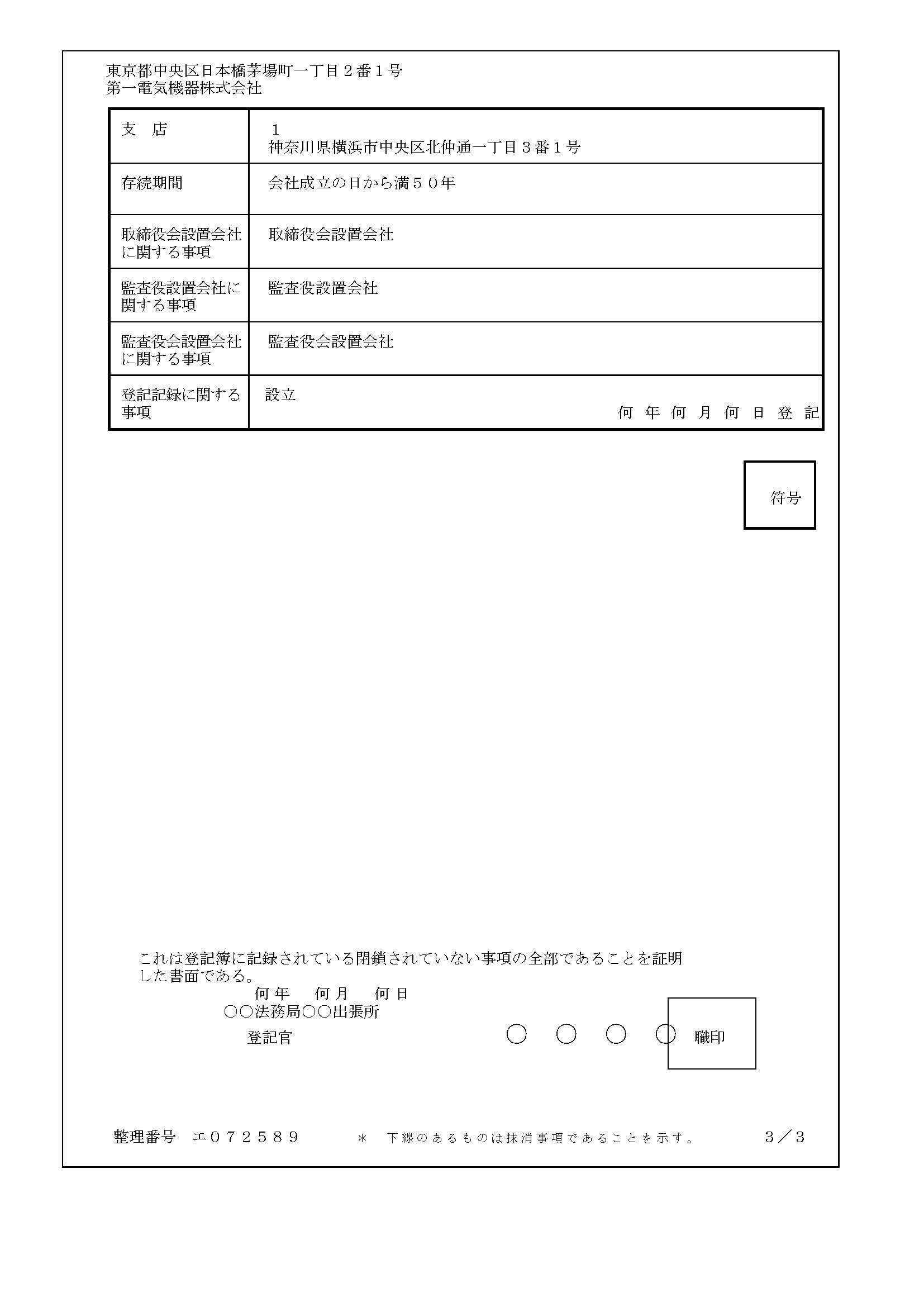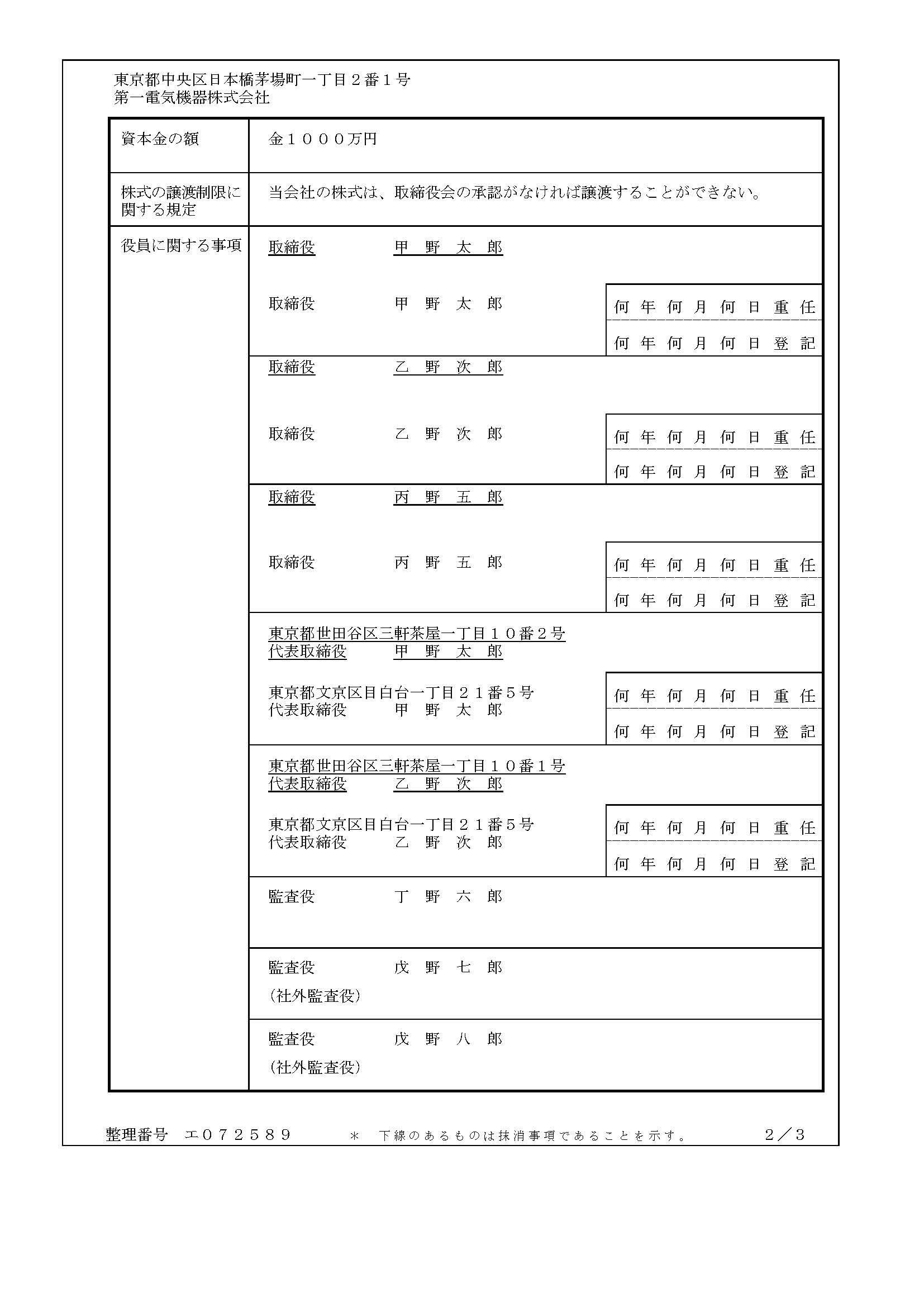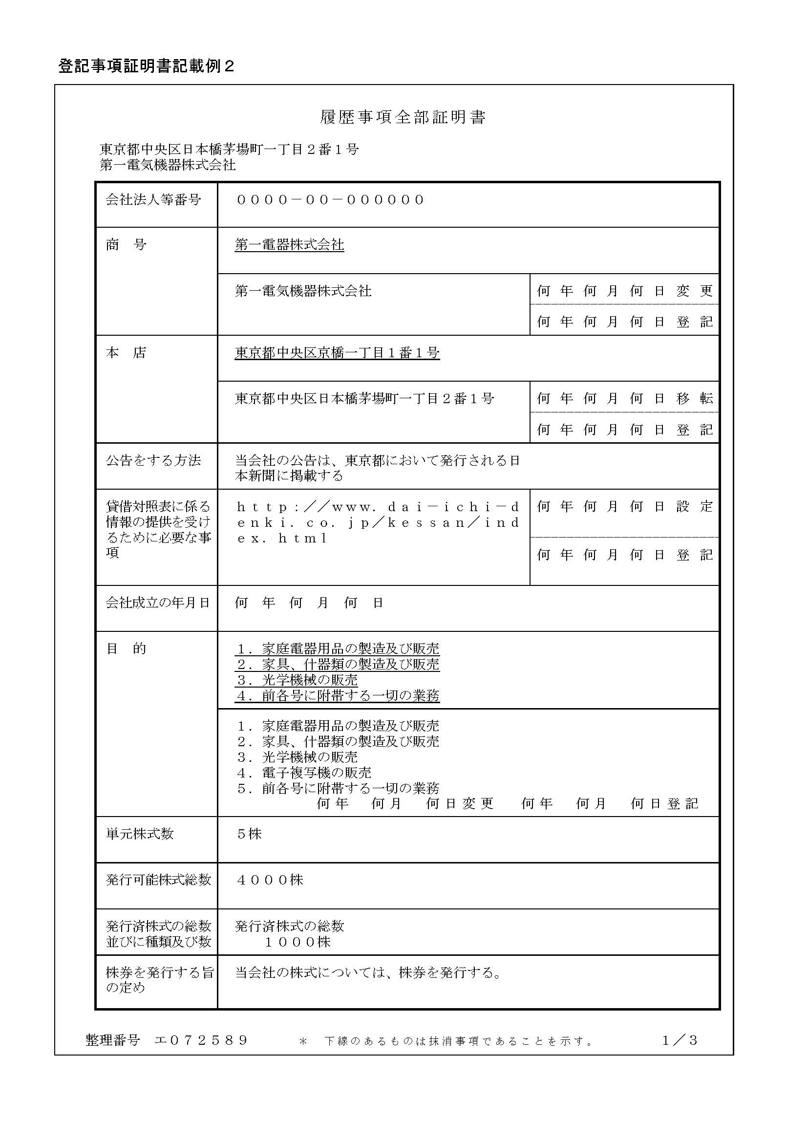 出典:法務省ホームページ 登記事項証明書記載例より抜粋